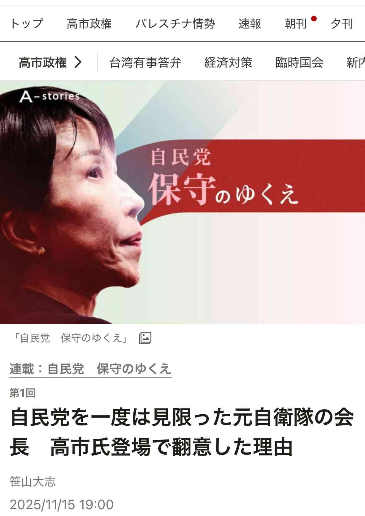 アカヒとまで言われた朝日新聞がサナ推し記事を上げているのは革命的だ