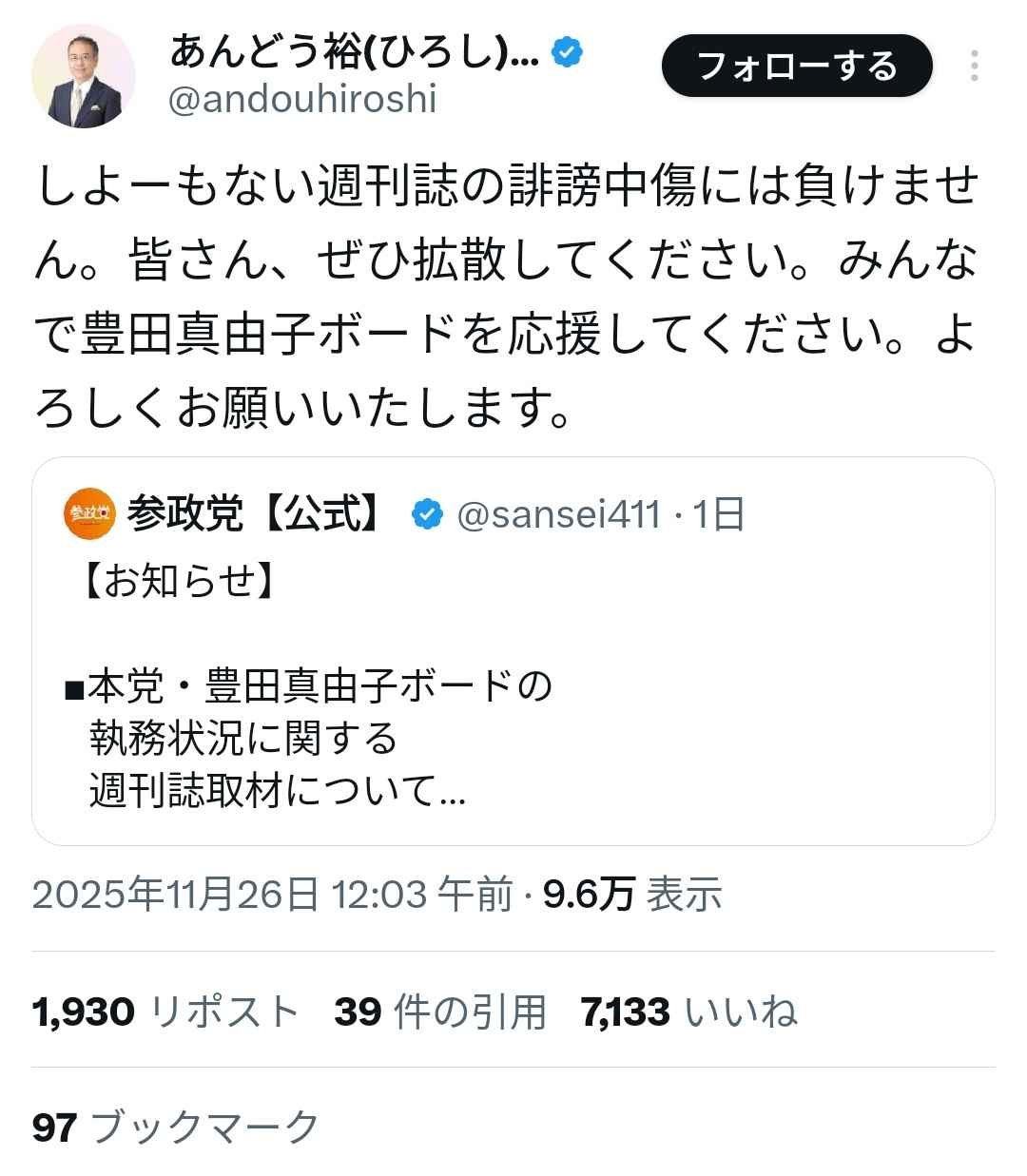 週刊文春の取材に答えた罪で梅村みずほ粛清「泣いて馬謖を斬る」 参政党神谷氏、梅村みずほ氏の役職解任を発表