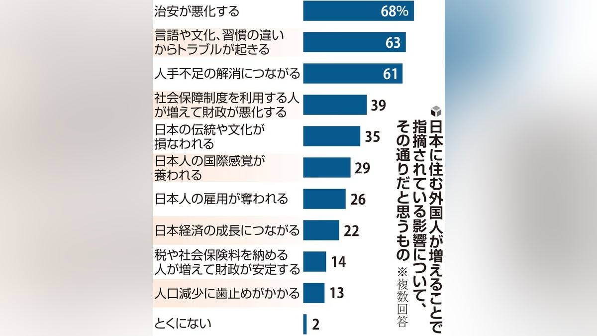 日本に住む外国人が増えることで指摘されている影響について、その通りだと思うもの