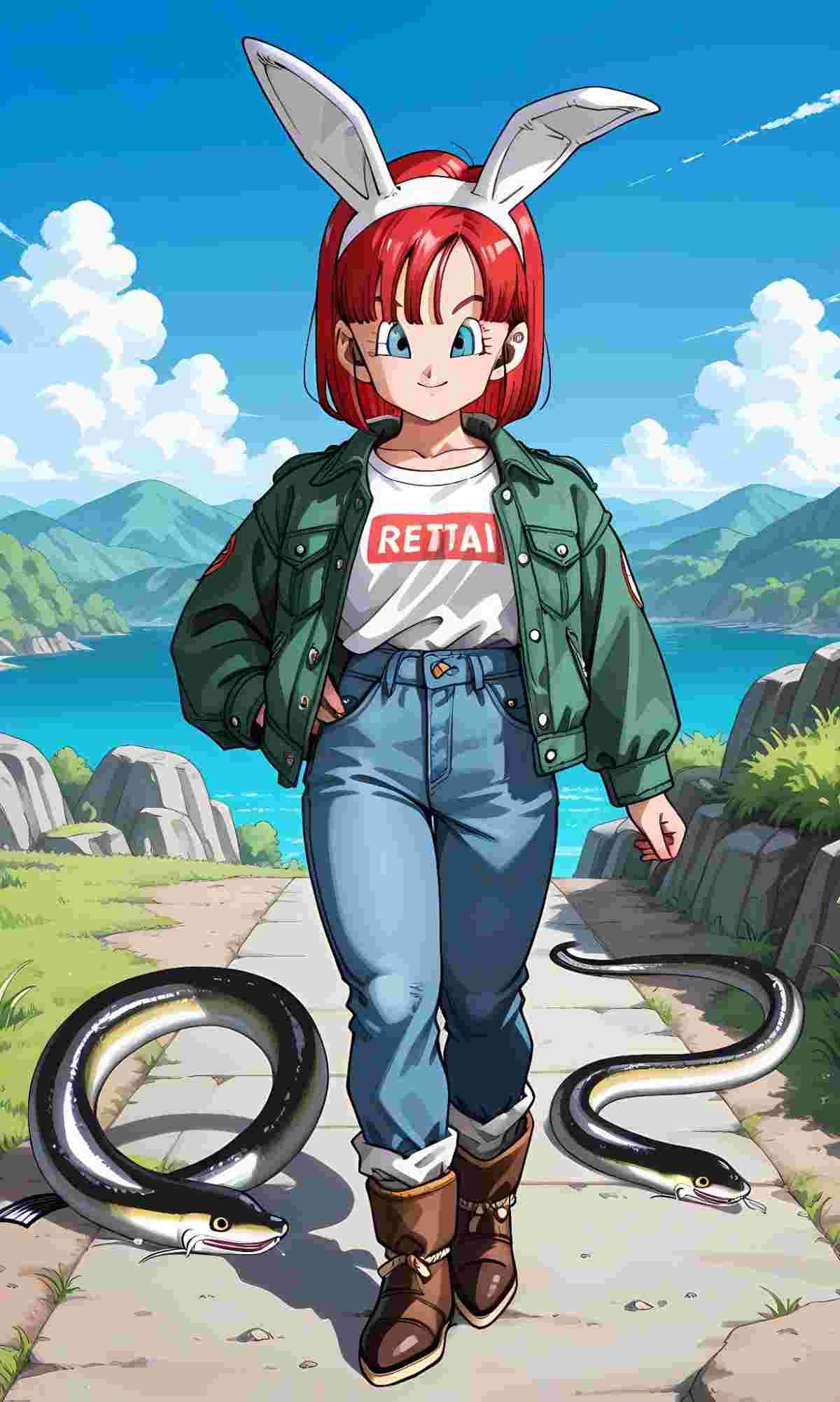 浜名湖の鰻と一緒に写っているメイベルちゃん達のAIイラスト
