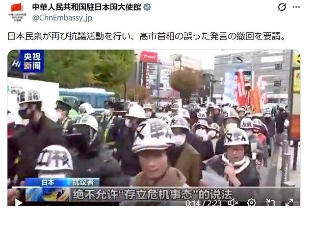 在日中国大使館、中核派系デモを「日本民衆の抗議活動」 参加者「高市発言は侵略宣言だ」(産経ニュース)