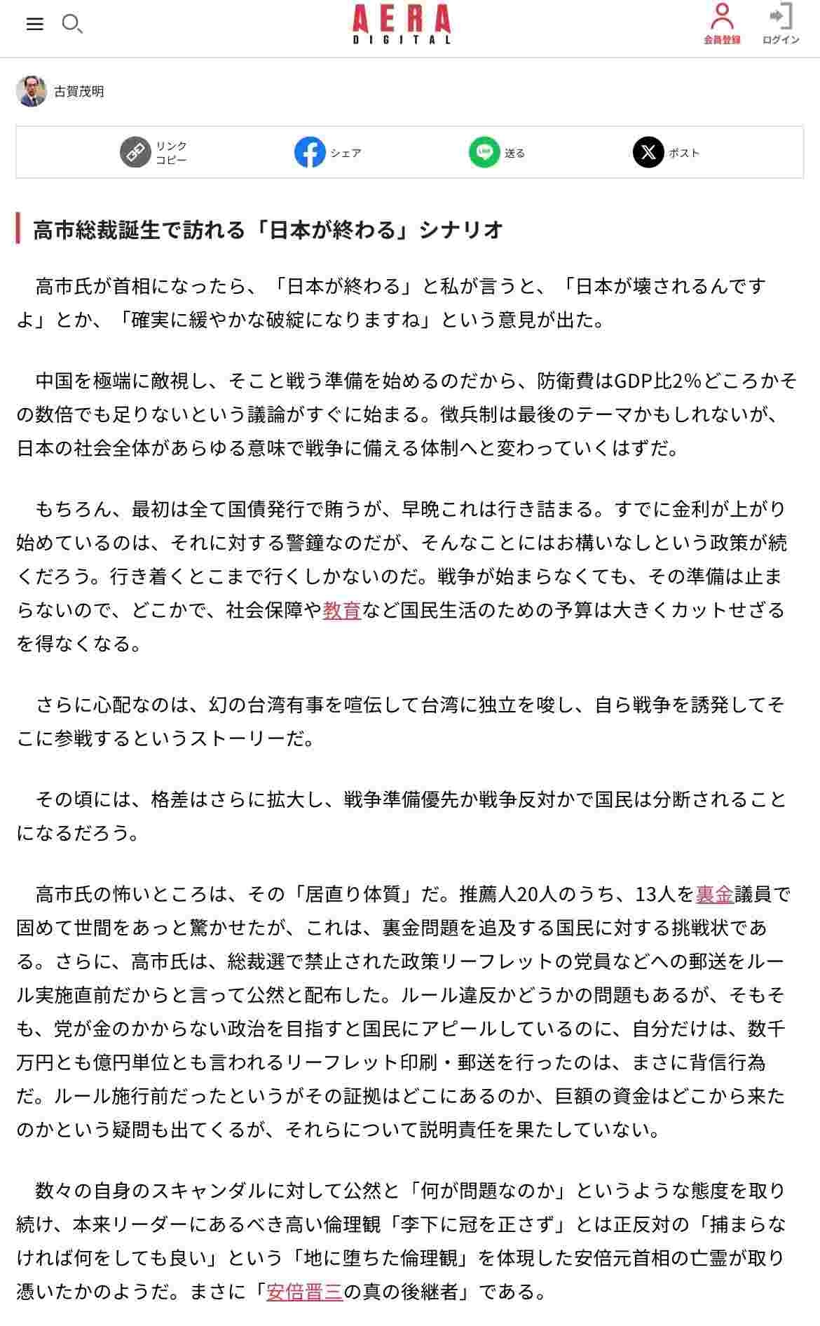 高市早苗氏の恐るべき“居直り体質”と“軍拡主義” もし首相になったら「日本は終わる」 古賀茂明