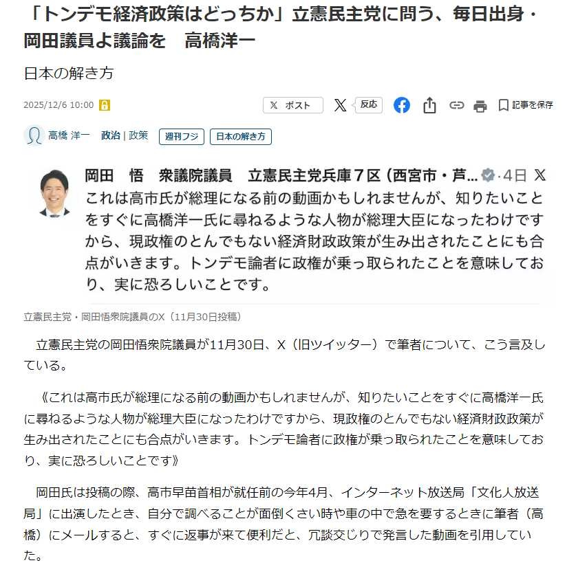 でも高橋のアドバイス受けてる高市政権でトリプル安になってるよね