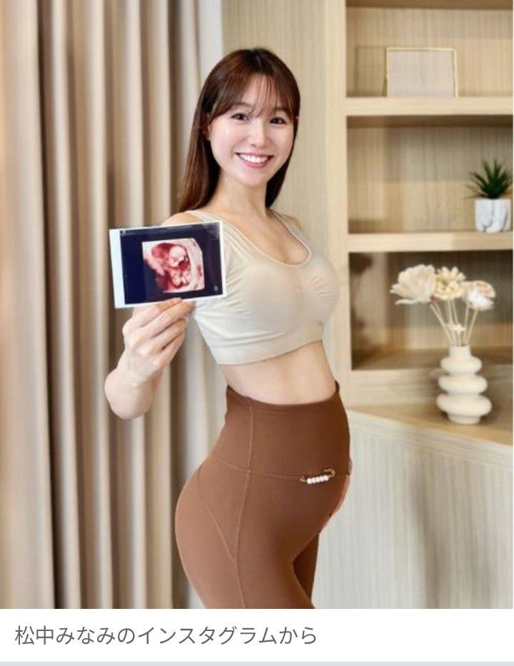 松中は「このたび新しい命を授かりましたことをご報告させていただきます 今は安定期に入り日々大きくなるお腹をなでては実感と成長を感じ温かい気持ちに包まれています」と発表し、おなかの大きくなった近影を披露した。