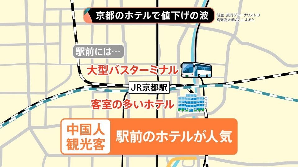 人気の観光地・京都では、インバウンドにより高騰していた宿泊料金が、いま安くなっているといいます。一体なぜなんでしょうか?
