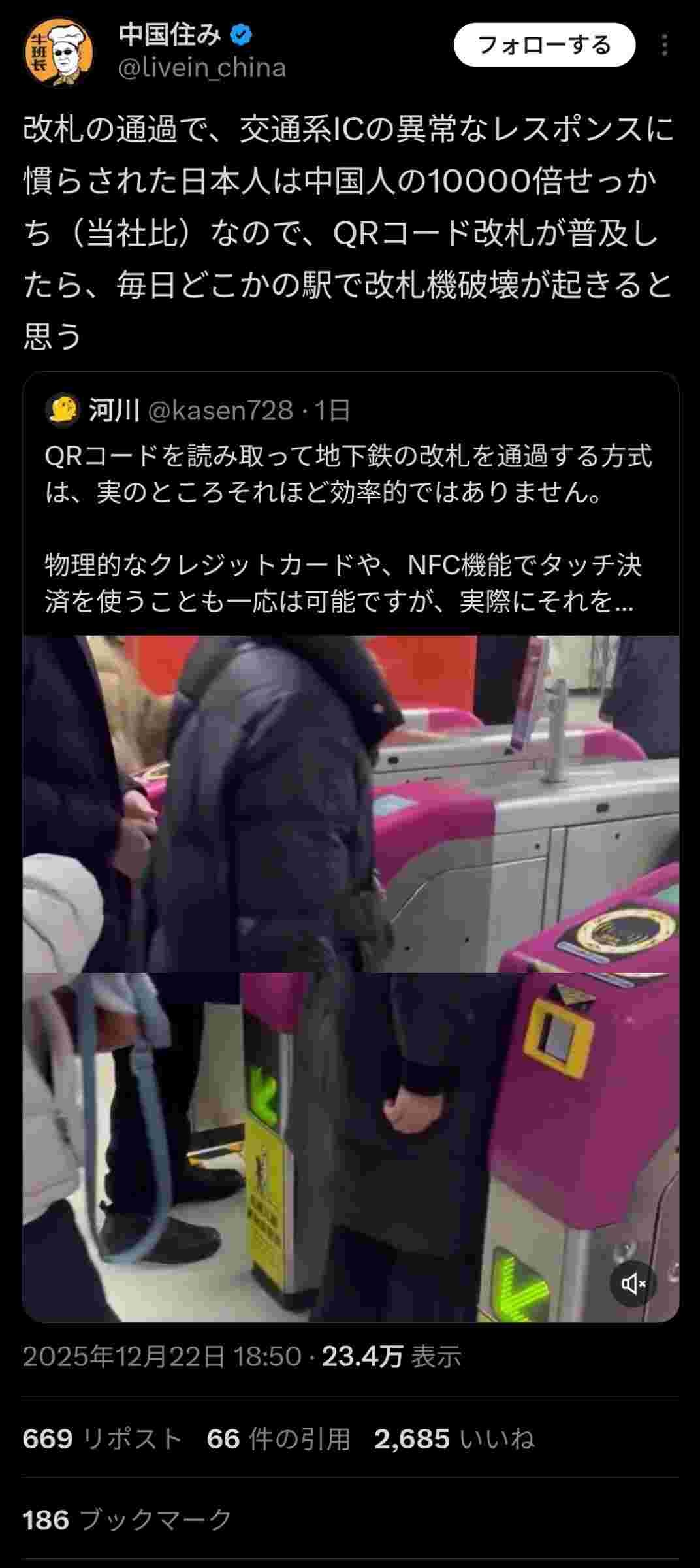 中国のQR改札とか遅すぎて発狂するわ