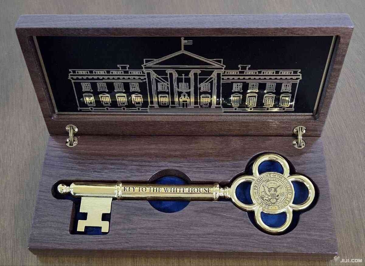 トランプ氏が「とても貴重な贈り物をもらったので特別な贈り物をしたい」と選んだという。金色の鍵は康京和駐米大使がトランプ氏とホワイトハウスで16日に面会した際に渡された。
