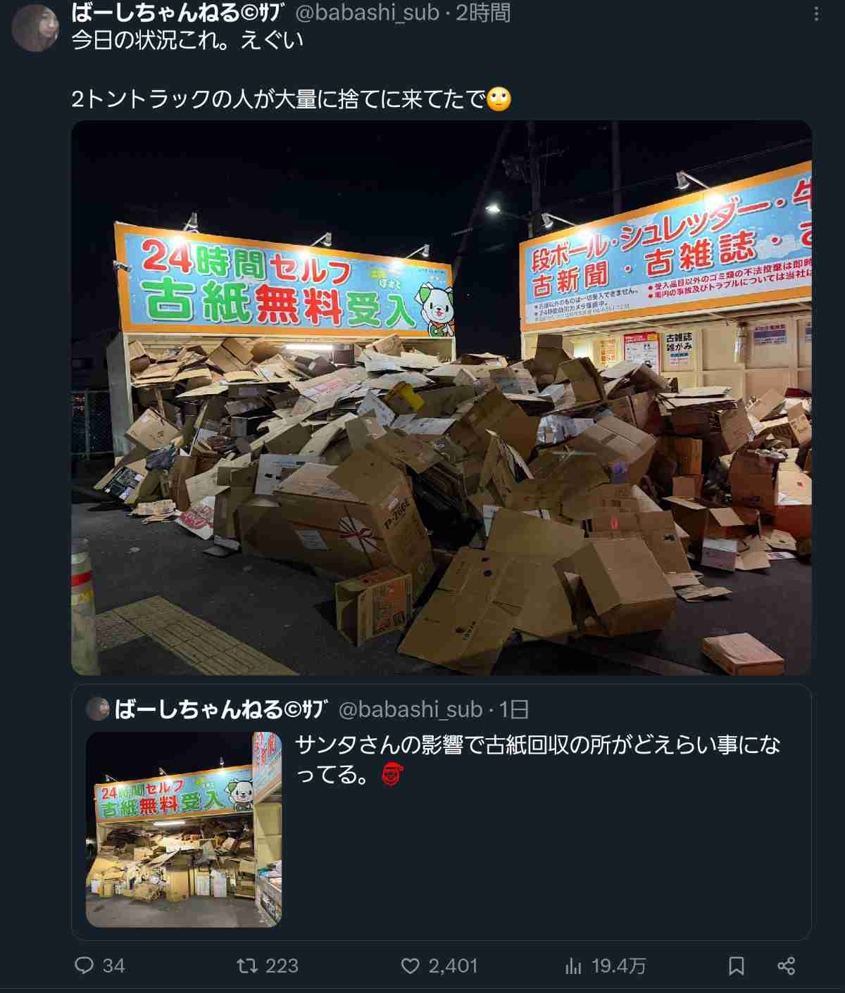 たぶん古紙工場になんかあってこの段ボールの行き先がないんだろうな。