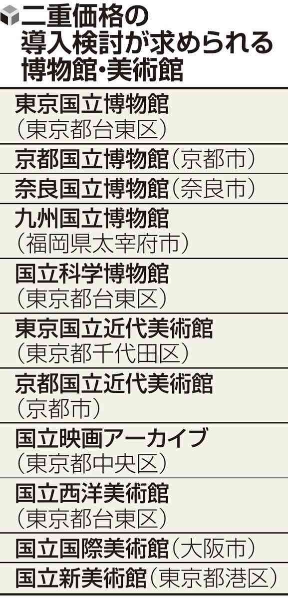 【一覧】二重価格の導入検討が求められる博物館・美術館