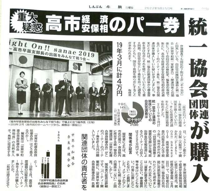 自民と統一教会の実質的な癒着は未だに続いてるのに