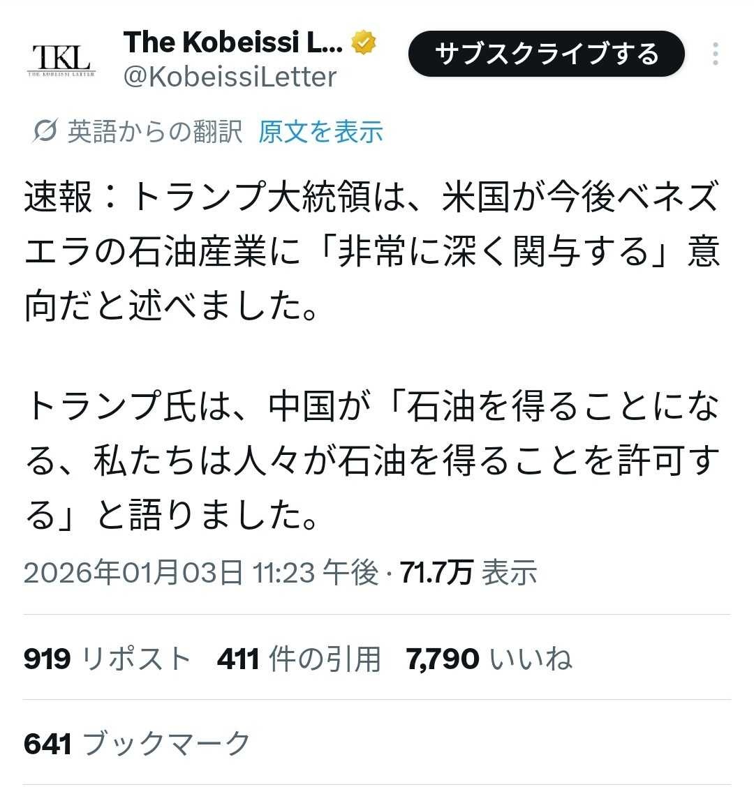 今はベネズエラが目茶苦茶だから米国が統治して回復してからって話だった