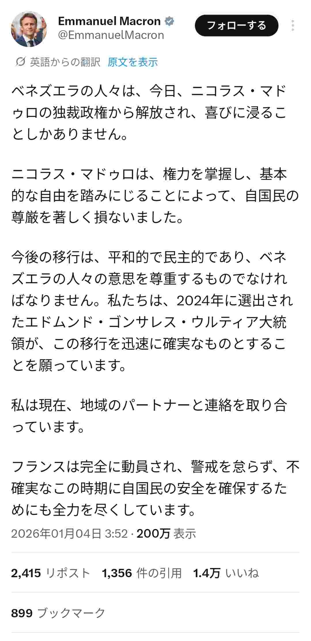 欧州も不正選挙だと批判していてマドゥロを大統領と認めていなかったからな
