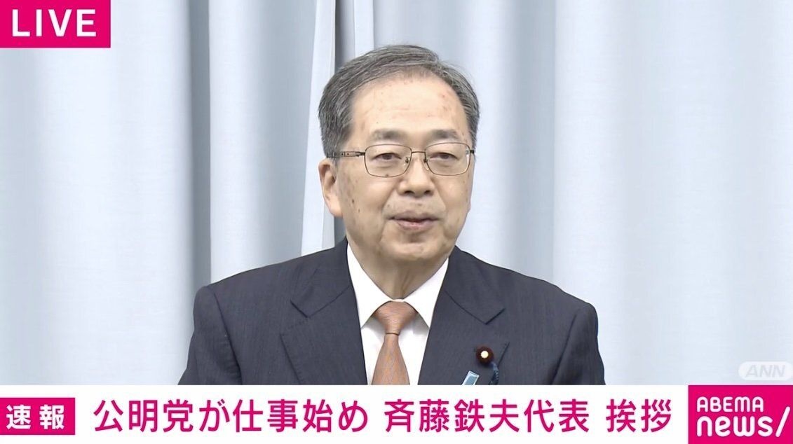 斉藤代表は冒頭「今年は公明党が原点に戻って出発する実質的な1年目の年だと思います。私たちの原点、『大衆とともに』『清潔な政治』に立ち返り、しっかりとした戦いを行っていきたい。そして、衆議院選挙につきましては、いつあるかわからない『常在戦場』、こういう状況でございますので、しっかりと準備も進めていかなければなりません。そして何よりも国会でしっかりとした論戦、国民の皆様から『さすが公明党、原点に返って頑張ってるな』という評価をいただけるような戦いをする年にしていかなくてはならない」と述べた。