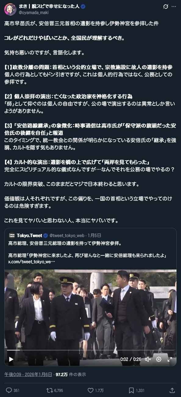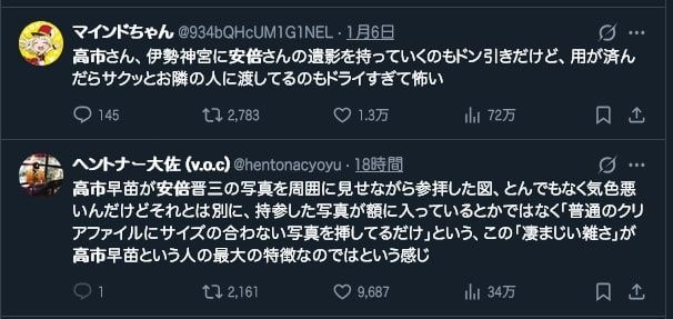 高市さんの1番怖いところはこういう非常識な行いを事前に諌めてくれる身内がいないことだわ