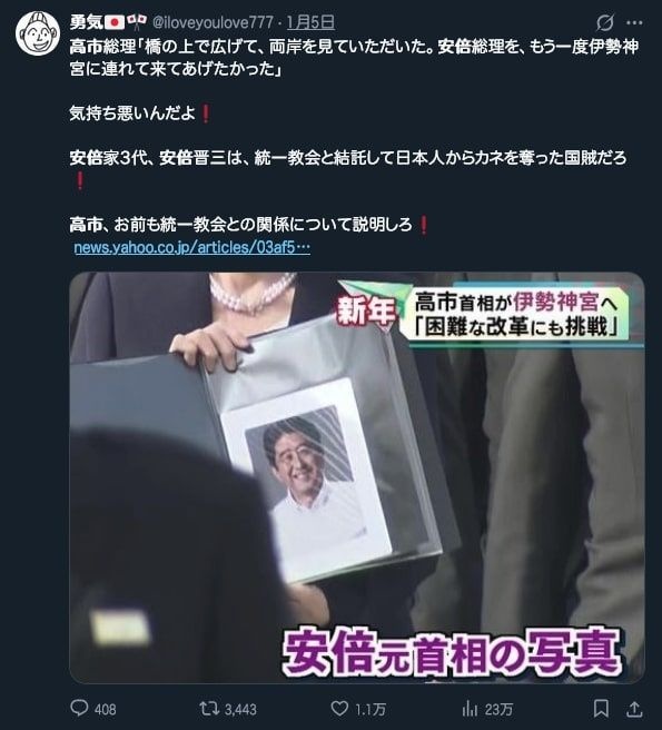 スピ系を否定する気はないけど流石に神聖な神宮に死んだ人間の写真見せびらかしながら歩き回るのはどうかと思う