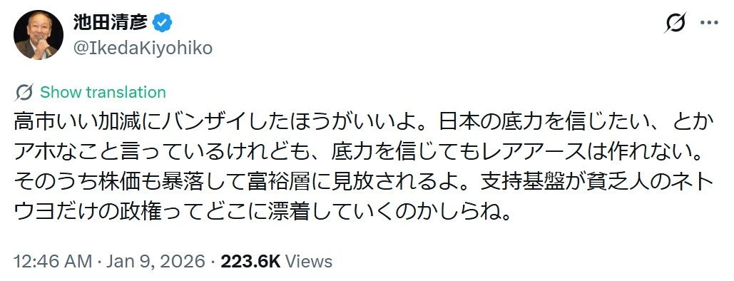 これは高市さんが悪いと言うより日本の平均的知能がそうなってるだけだからな