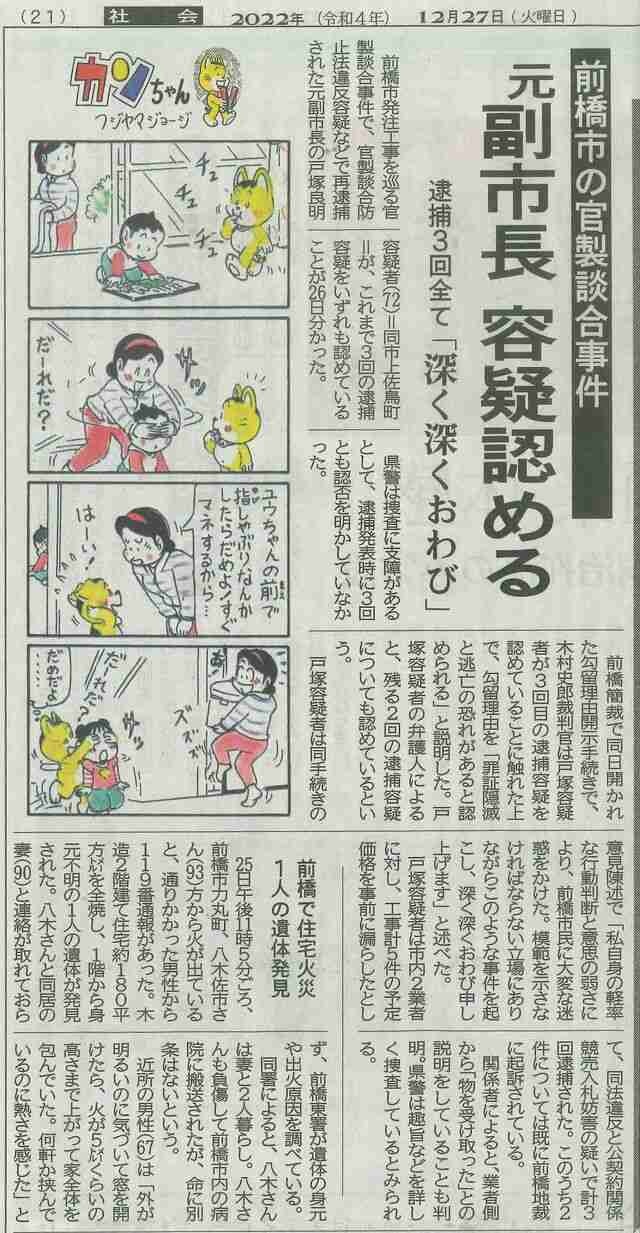 また同時期に藤岡市副市長と藤岡商工会議所会頭でもある土建屋の社長がやはり官製談合で逮捕と