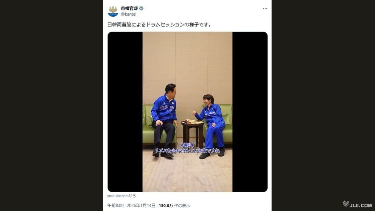 日韓首脳のドラムセッション動画公開 高市首相、李大統領を絶賛