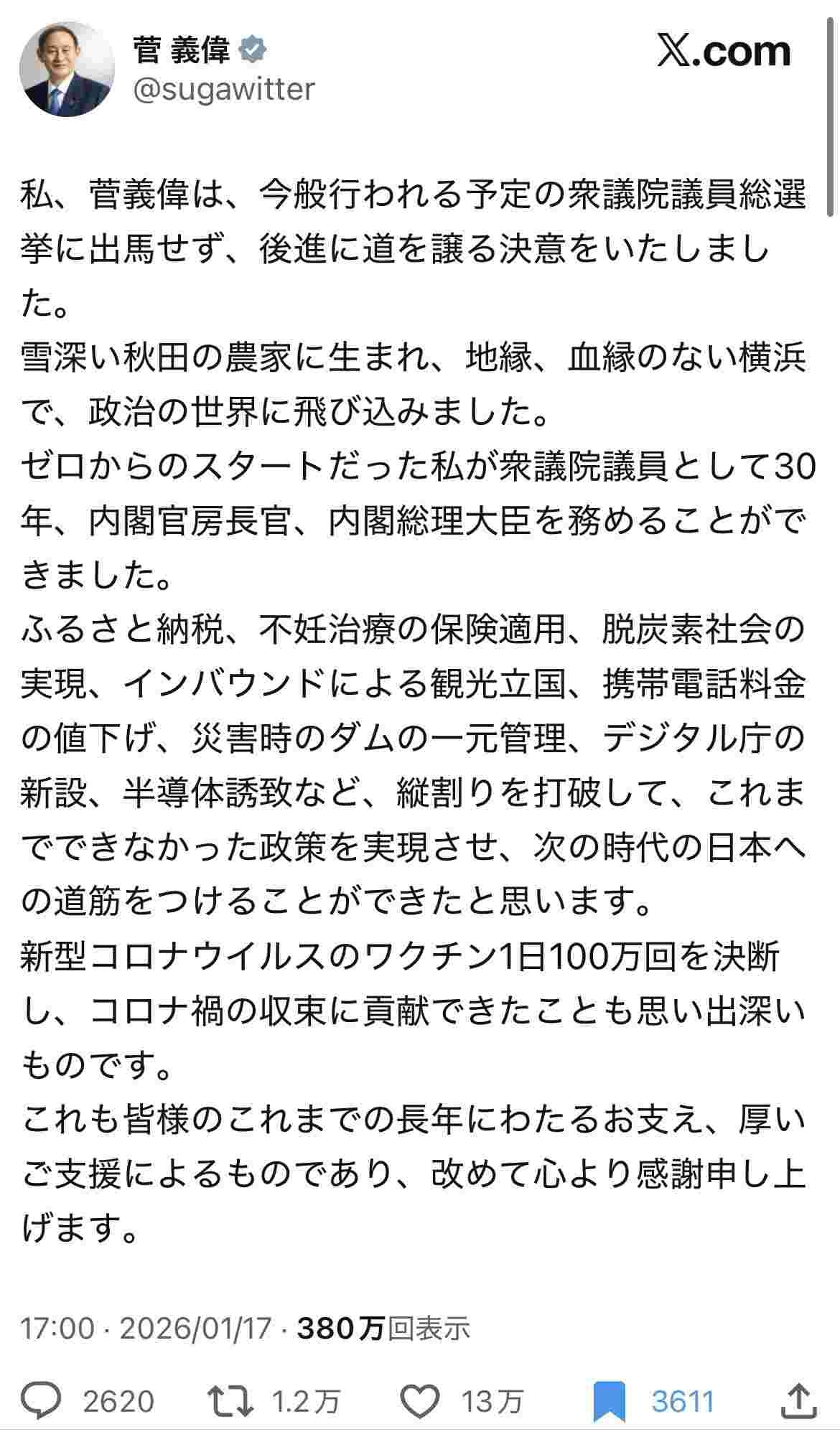 スガの地盤は息子かなんかが引き継ぐの?