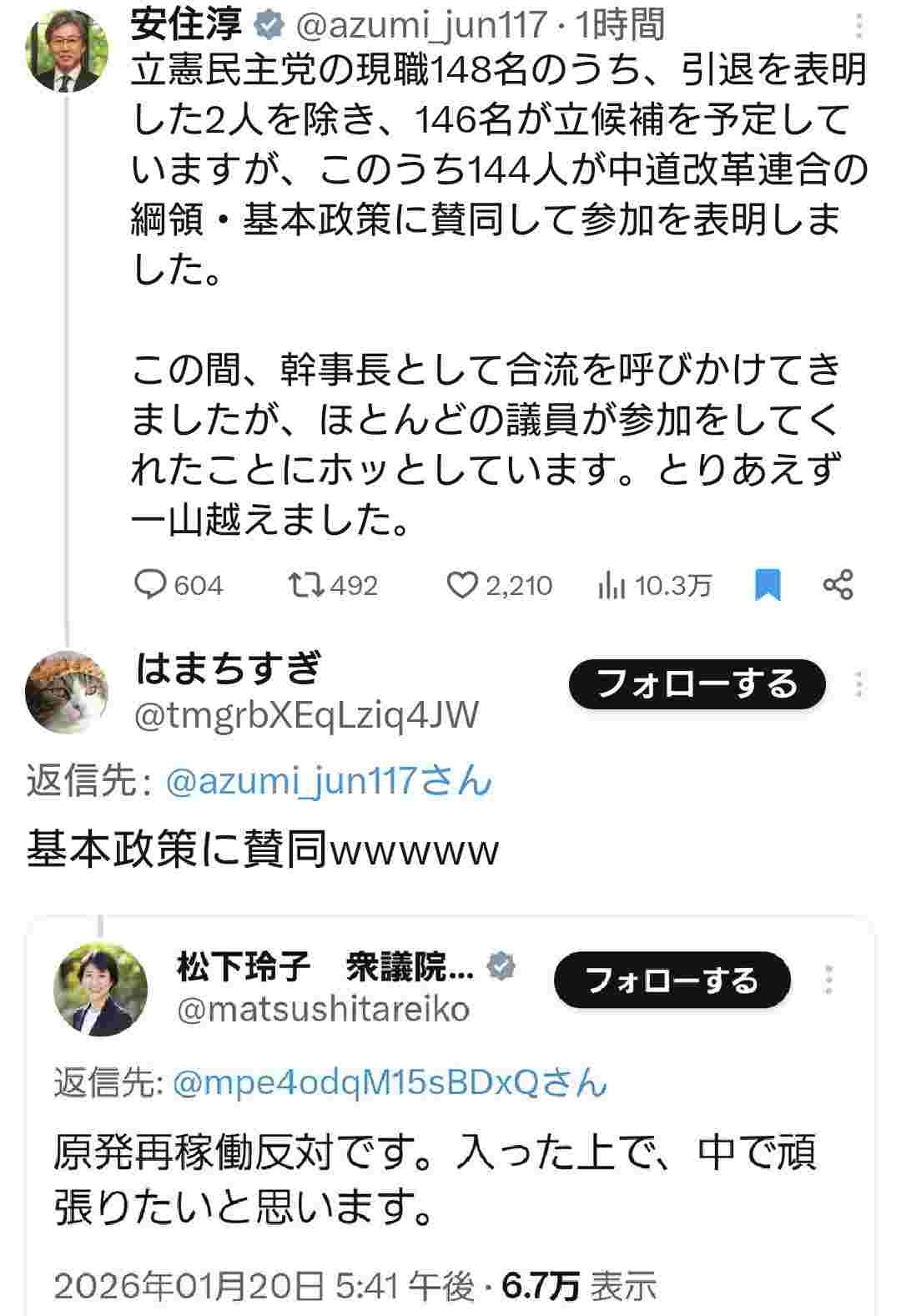 2名を除き思考停止の立憲議員