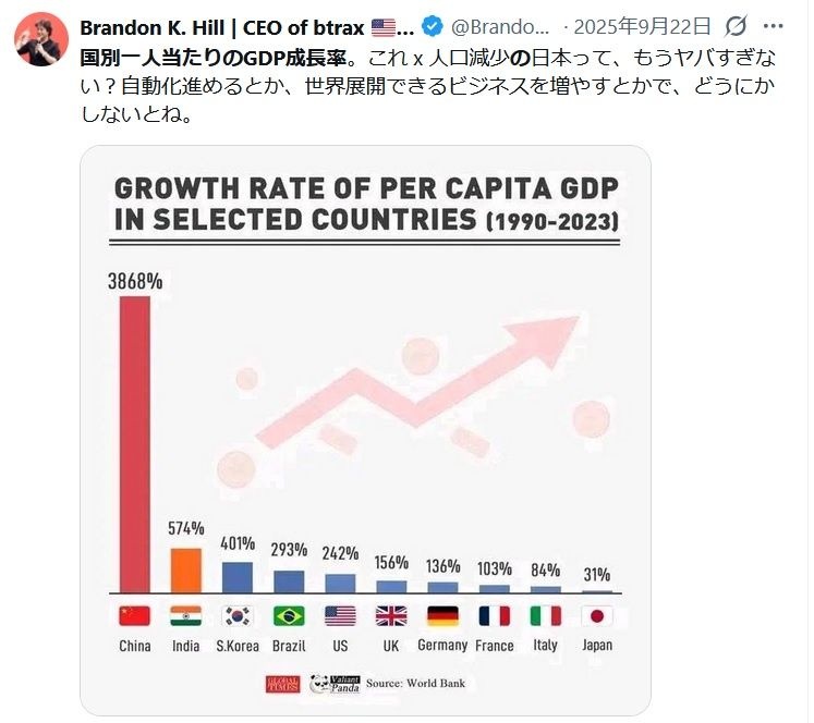 成長率じゃなく、今の国力で勝負すれば日本の方が勝ててるだろう
