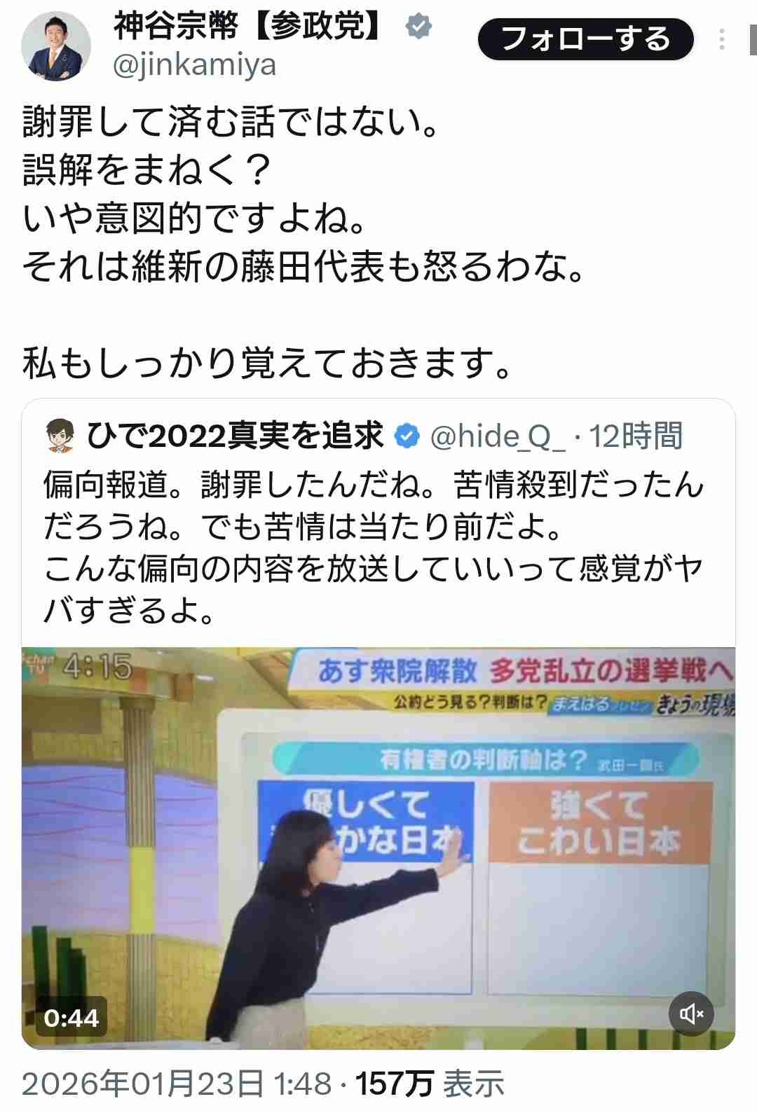 MBS「優しくて穏やか:中革連、国民、共産、れいわ。 強くてこわい:自民、維新、参政」 [662593167]