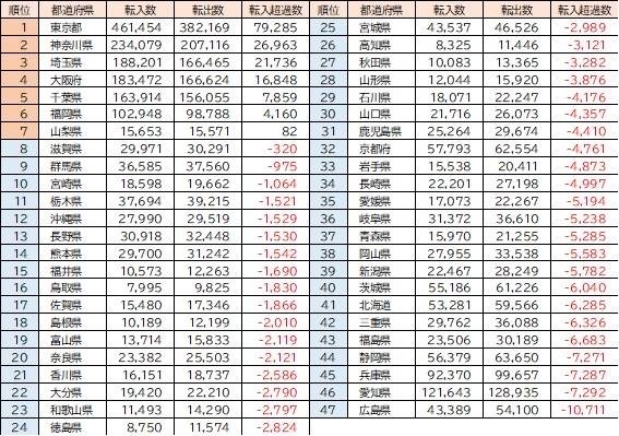 愛知←万年転出超過 トヨタだけの県で 閉鎖的だから発展性なし