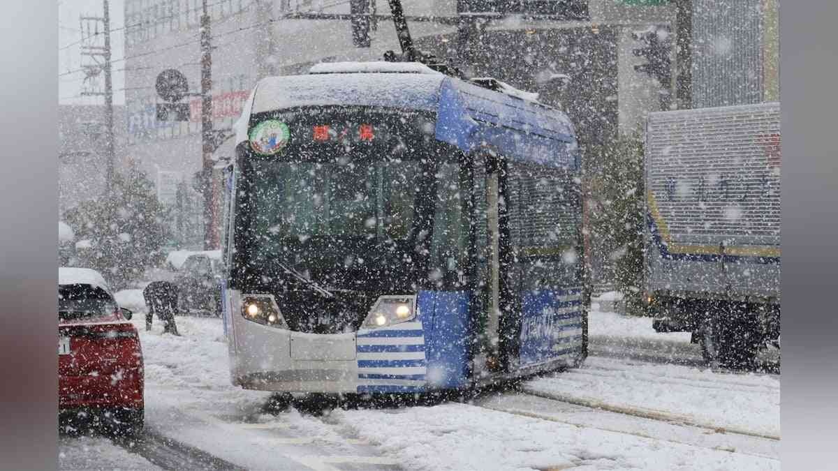 雪国で路面電車はおかしいと思うけど、普段は雪が積もらない地域なのかな?