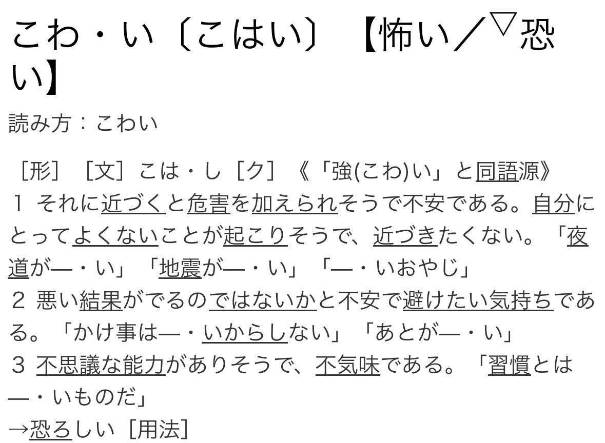 ってなるからこわいの強いだと意味おかしいことにならね?