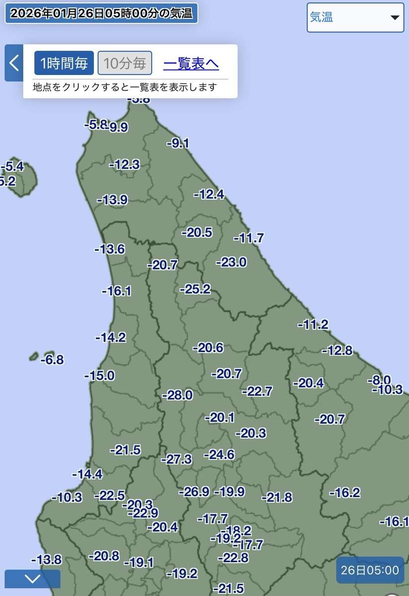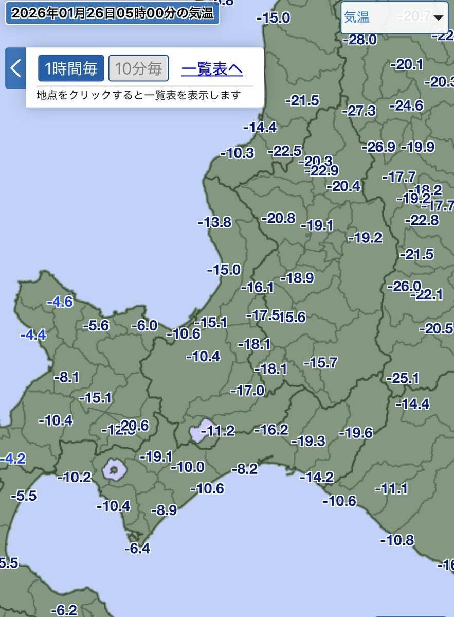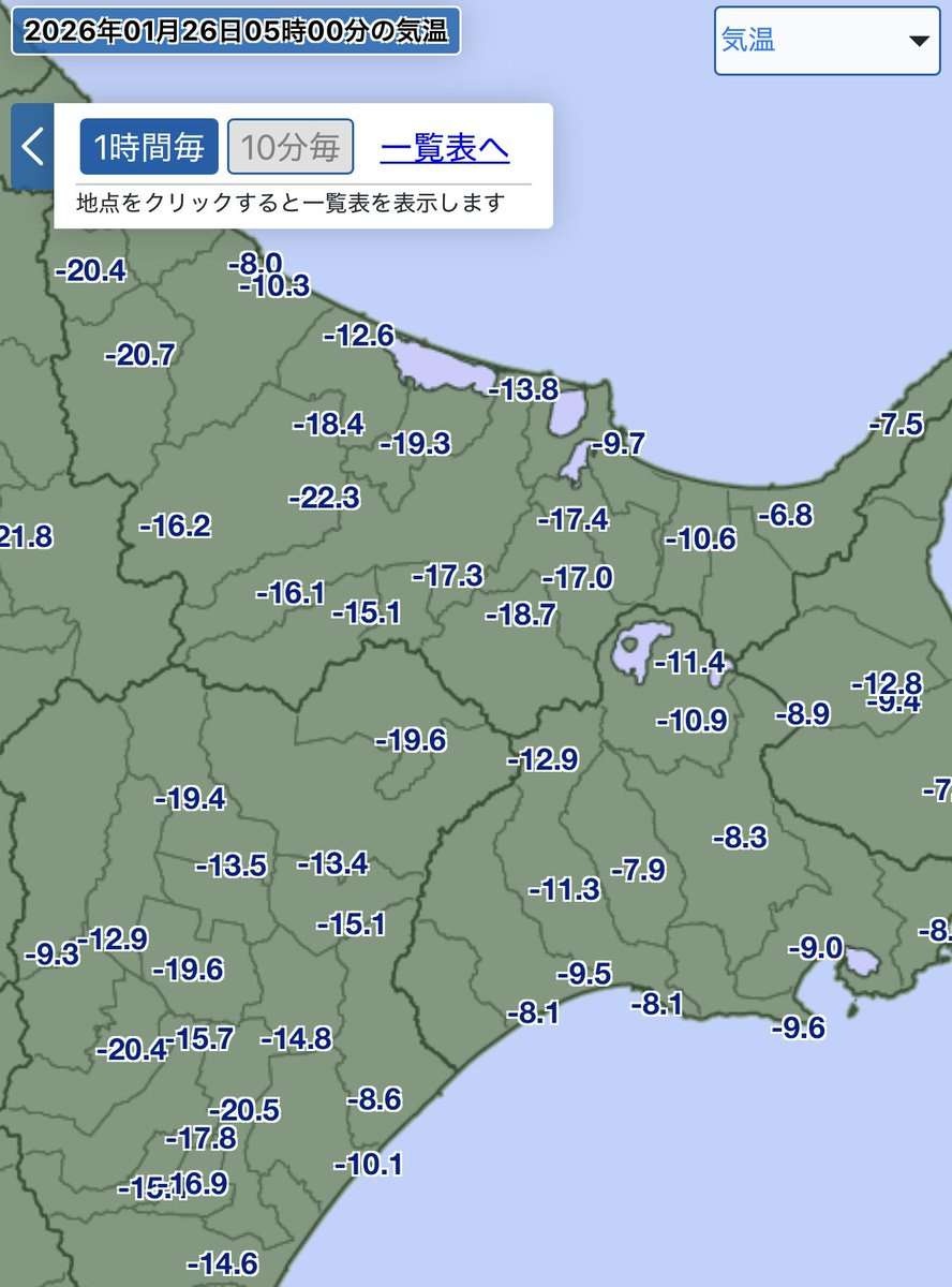 明け方氷点下5℃くらいなら東京でもいっとるじゃん
