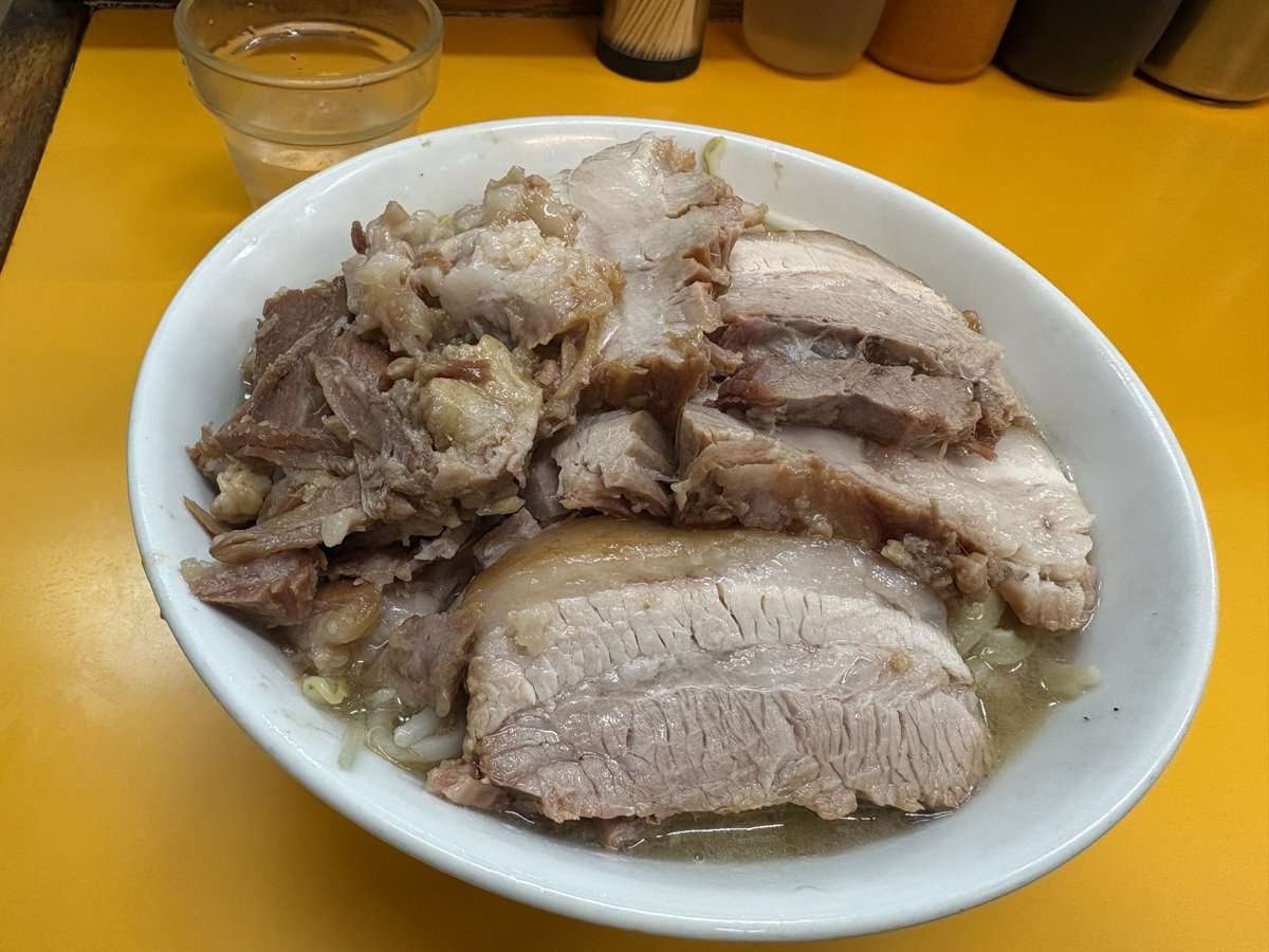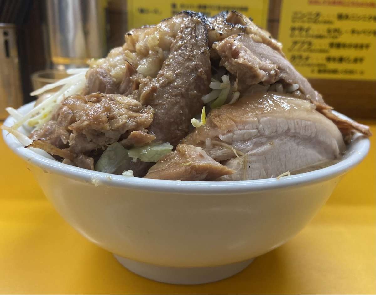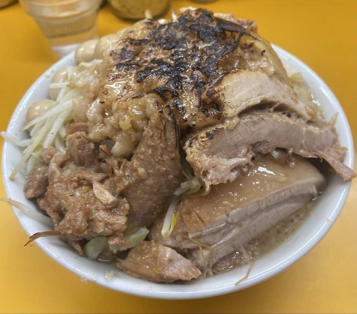 久しぶりの二郎系🍜 大満足😊🍜 豚ラーメン(ニンニク、ヤサイ、焦がしアブラマシマシ)🍜 たまに食べると旨いなー‼😋#二郎系 #ラーメン #エース #背脂