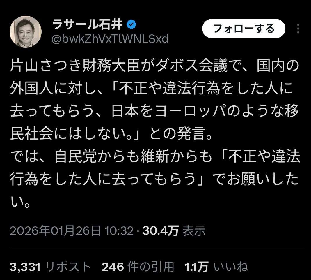 ラサールとしては不正外国人も去らなくていいと思ってるみたいだからな