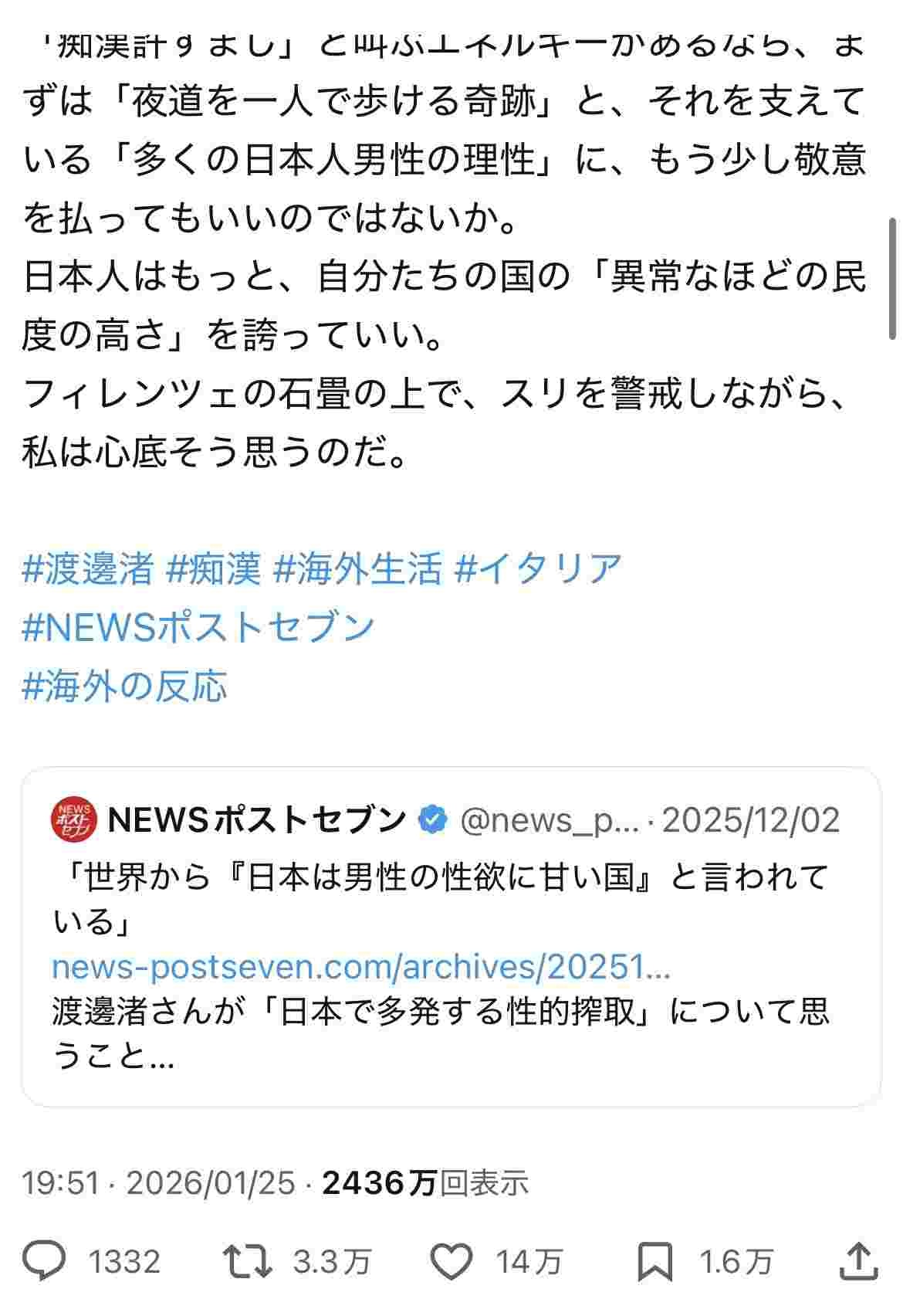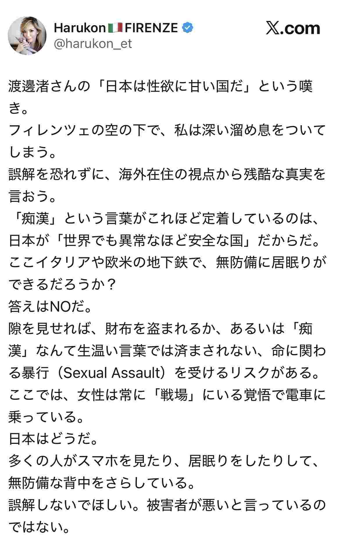 渡邊渚の言い方が全ての日本人男性に喧嘩売ってるみたいな形になってて乱暴だから反論したいのはわかるんだが、、