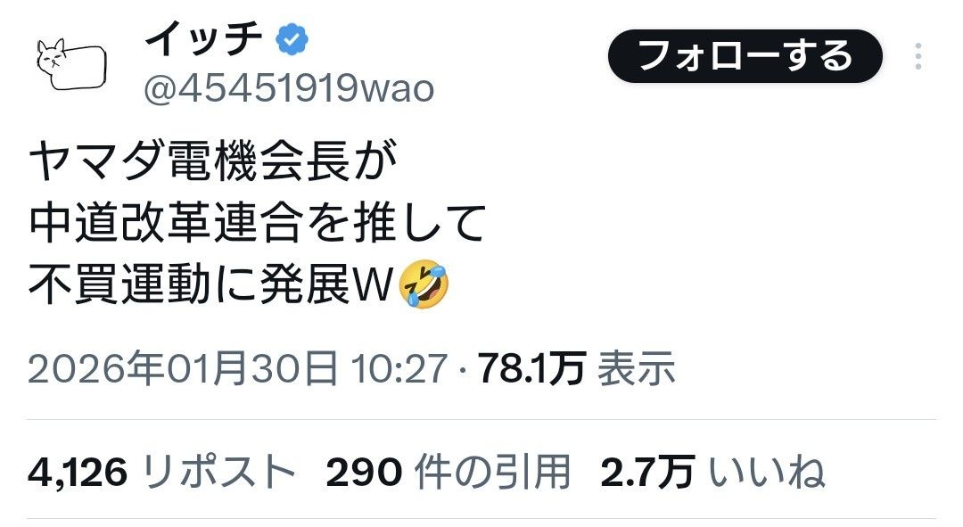 楽天とかヤマダとか急に反自民になってわかりやすいな