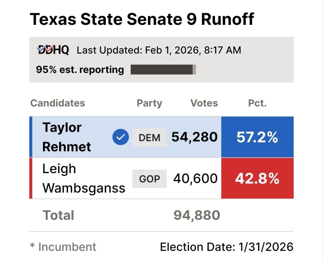 今回の選挙があったタラント郡はずーっと共和党の牙城だったらしいぞ?
