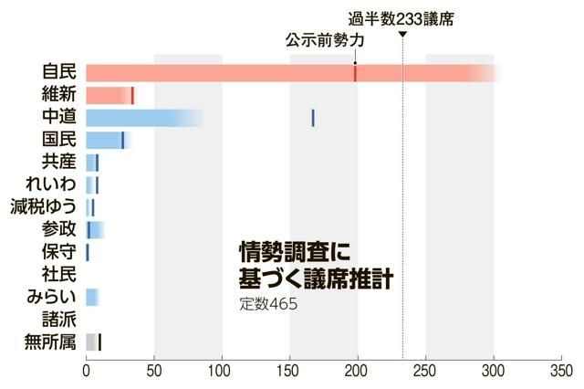 自維300議席超うかがう 中道半減も 参政・みらい勢い 朝日調査