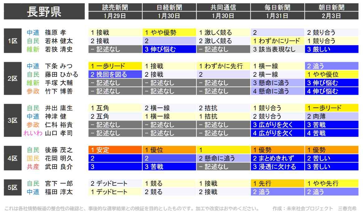 朝日新聞の情勢調査では長野県自民党全勝の模様