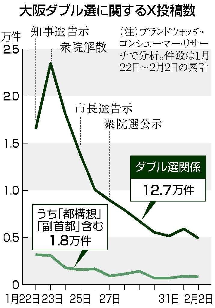 SNS「都構想」盛り上がらず 言及は14%止まり―大阪ダブル選