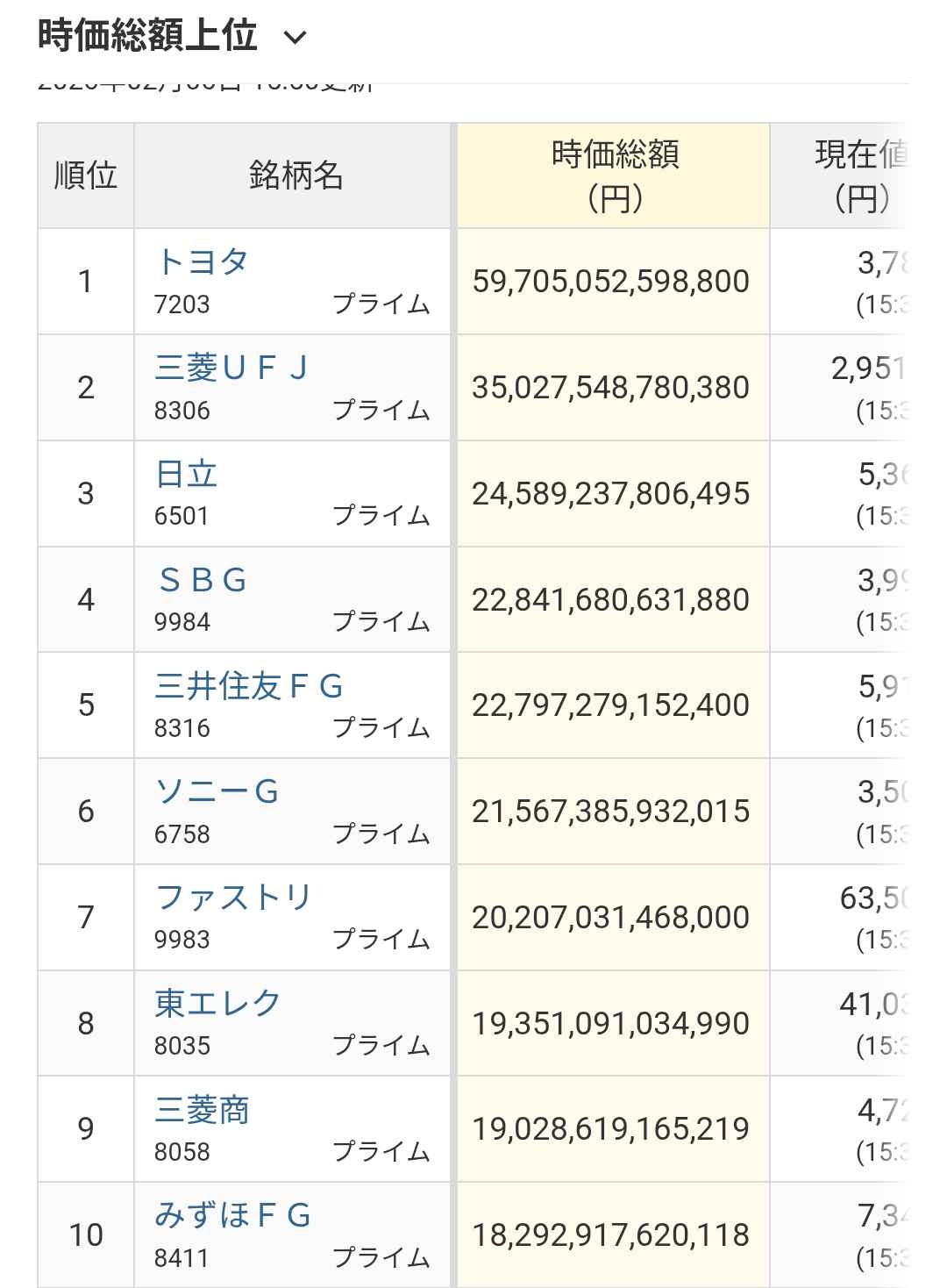 トヨタと銀行しかねぇ!