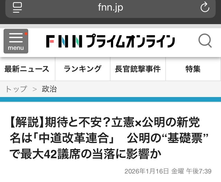 使う奴が、公明票は全部自民から中道に入る、これまでの立憲票はそのまま中道に入る、自民のデータは不人気石破の時のを使う~みたいな