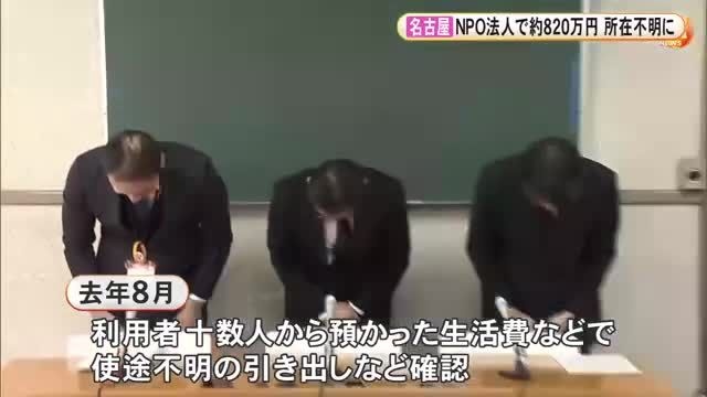 生活保護受給者らの支援事業を行う名古屋市のNPO法人で、40代の支援員が管理する利用者の生活費などおよそ820万円が所在不明となっていることが分かりました。