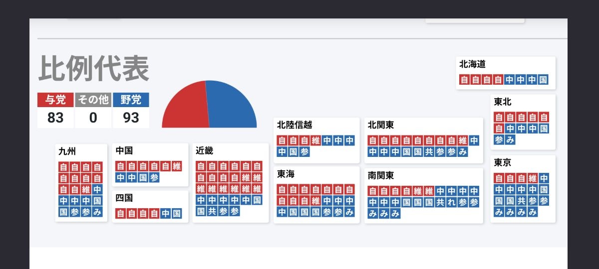 東京と神奈川は全部自民に取られたのに比例だと自民少なくて草