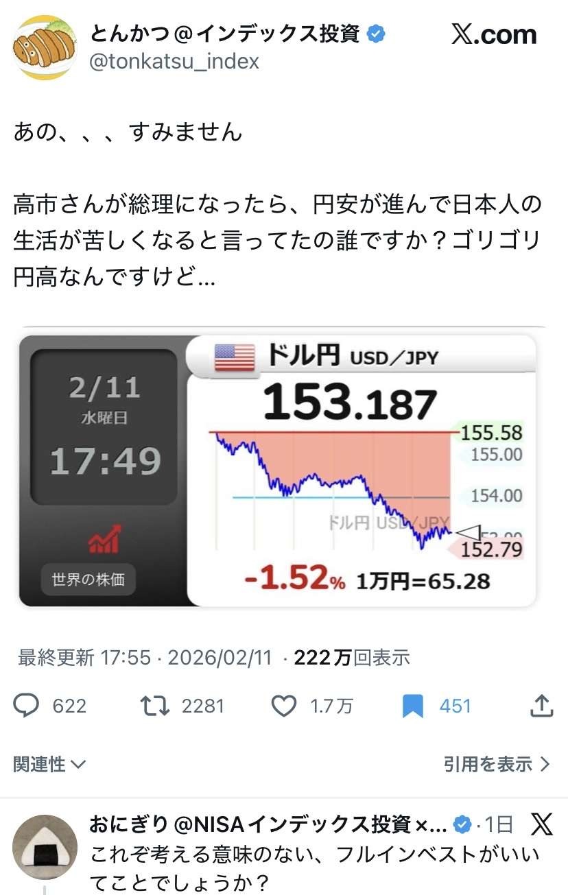 高市首相のおかげで円高になるし株高になるしホクホクすぎる😍😍