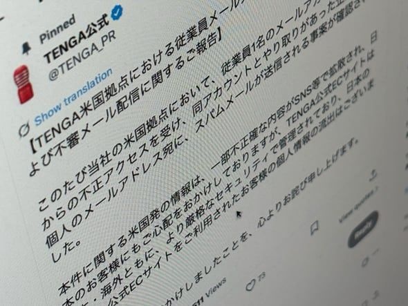 アダルトグッズメーカーのTENGAは2月16日、米国拠点で従業員1人のメールアカウントが第三者による不正アクセスを受け、顧客情報が一部漏えいしたと公表した。その情報がSNSなどで広まったため、翌17日には日本の公式Xアカウントが声明を発表し、国内ECサイトを利用したユーザーの情報流出はないと明言した。