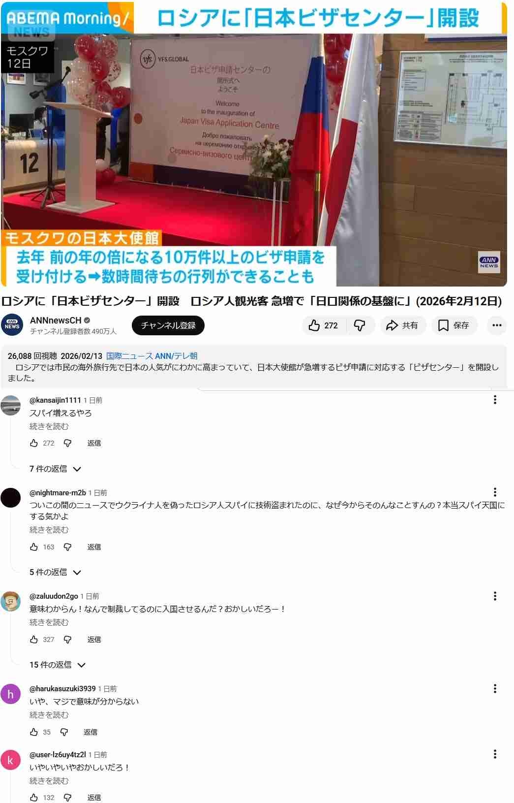 モスクワの日本大使館では去年、前の年の倍になる10万件以上のビザ申請を受け付けました。普通の日本人「スパイ増えるやろ」