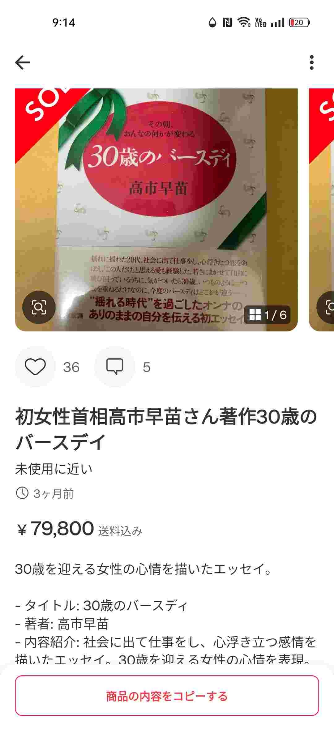 「30歳のバースディ」著者:高市早苗(ほぼ未使用)が79800円で売られてしまう…