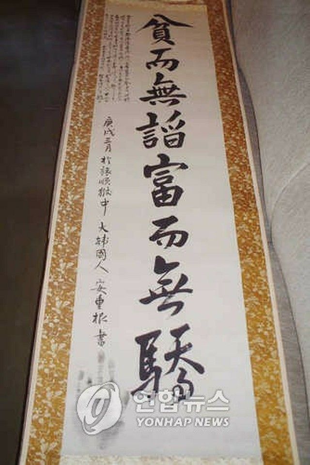 東京都 安重根の書を韓国・国家報勲部に貸与=来月記念館で展示(聯合ニュース)