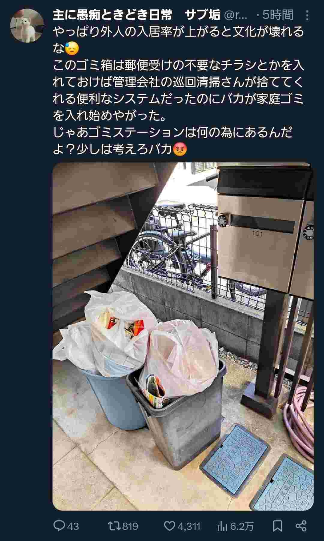日本人だってスーパーやコンビニで家庭ごみ捨てるし