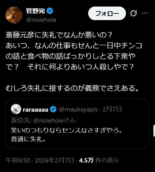 斉藤元彦は人間じゃない、人間のクズでもない。邪悪が服着た畜生
