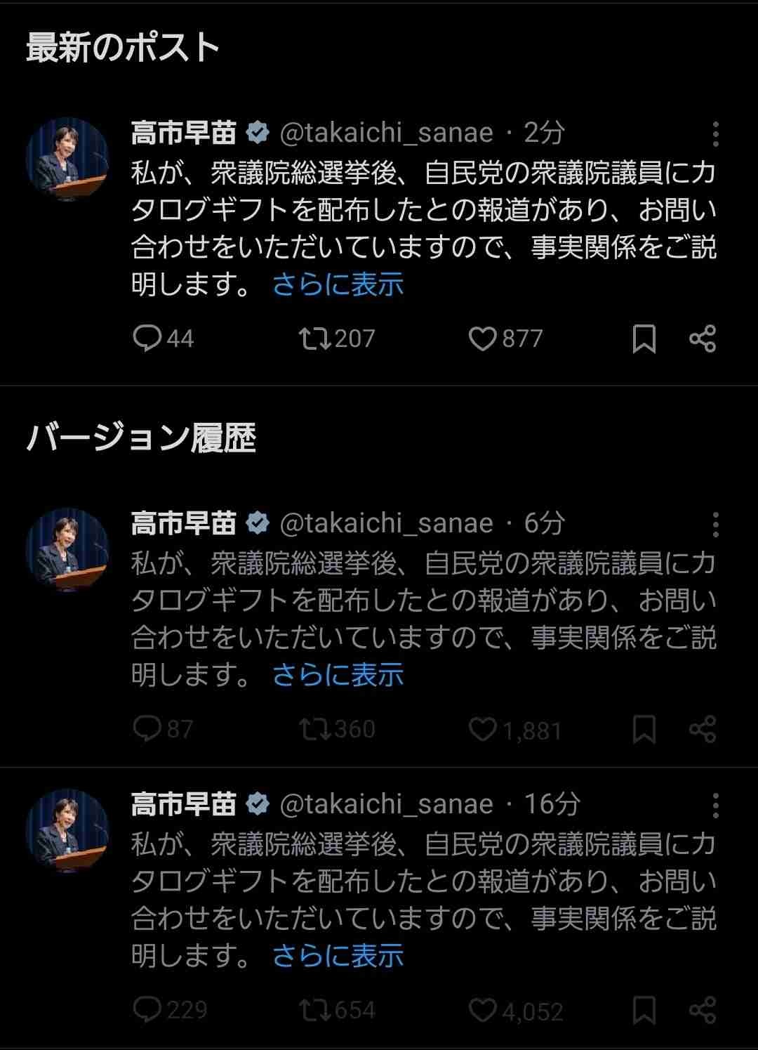 高市早苗さん、カタログギフト疑惑で動揺 言い訳ツイートをなんども修正してしまう😅